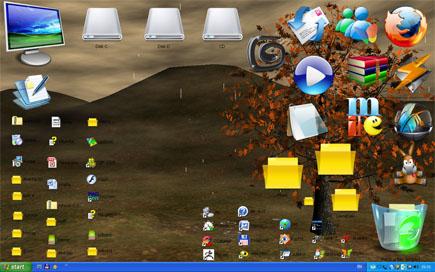 Desktop3D includes more of 100 icons that replaces the default icons on a large and beautiful with alpha - effect (Transparency). Desktop3D replaces the wallpaper on animated pictures that will definitely give a twist to your desktop. The default setup includes three skins, there are a beautiful blue sea representation, a fire and a nice looking rainy autumn day, and more skins is available on the web-site.